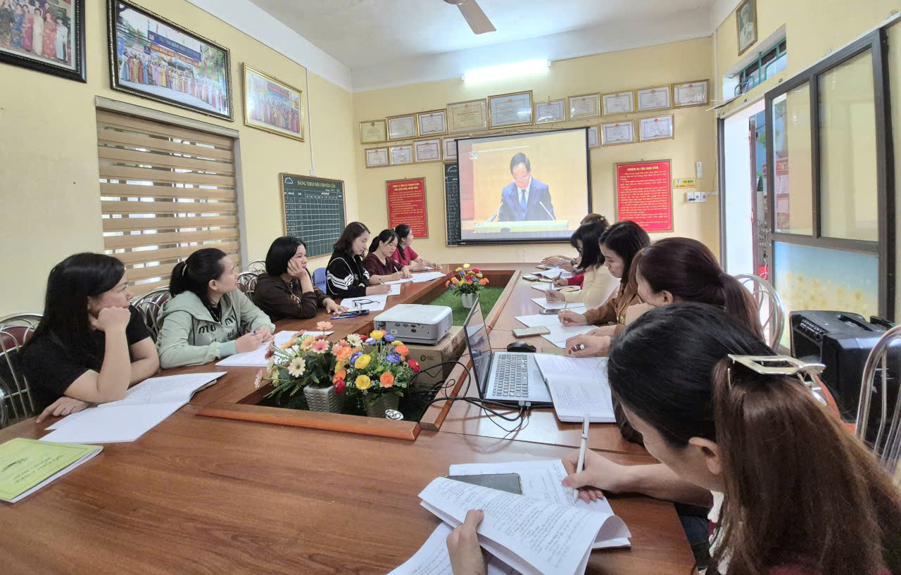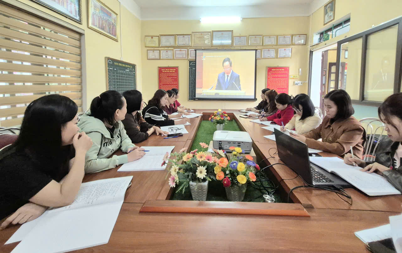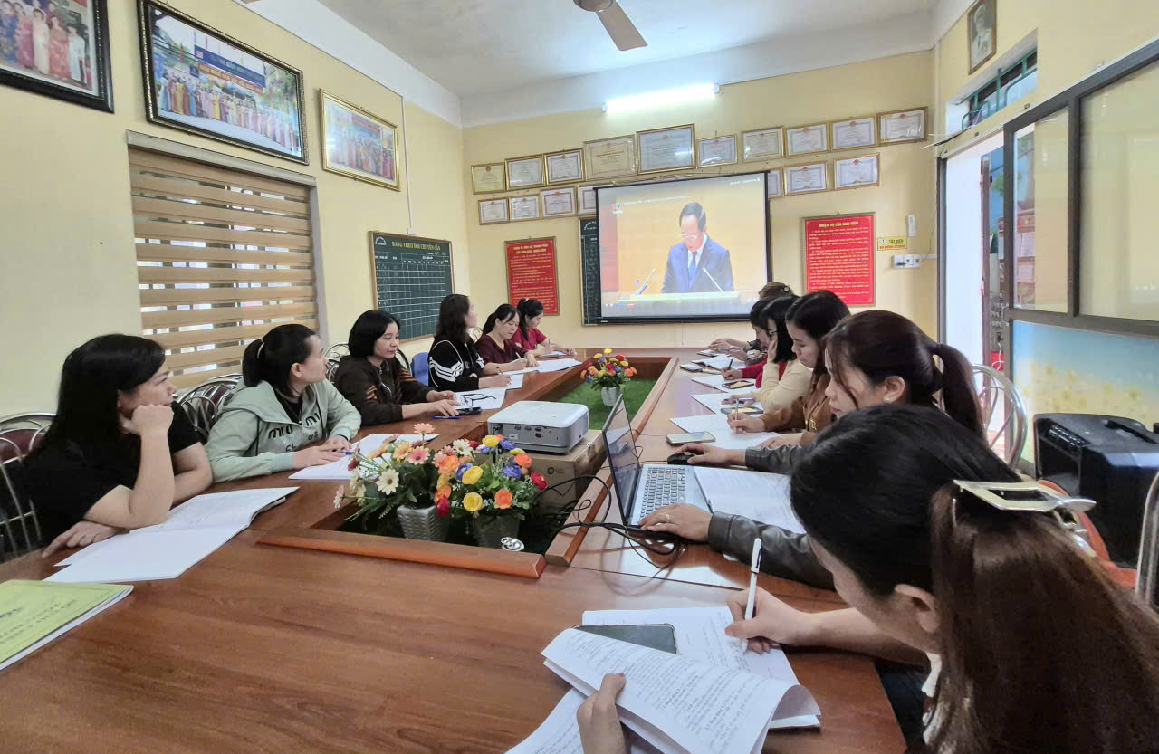 Chi bộ Trường Mầm non Nam Bình tham dự Hội nghị trực tuyến nghiên cứu, học tập, quán triệt, tuyên truyền và triển khai thực hiện Nghị quyết số 79 – NQ/TW, Nghị quyết số 80 – NQ/TW của Bộ Chính trị.