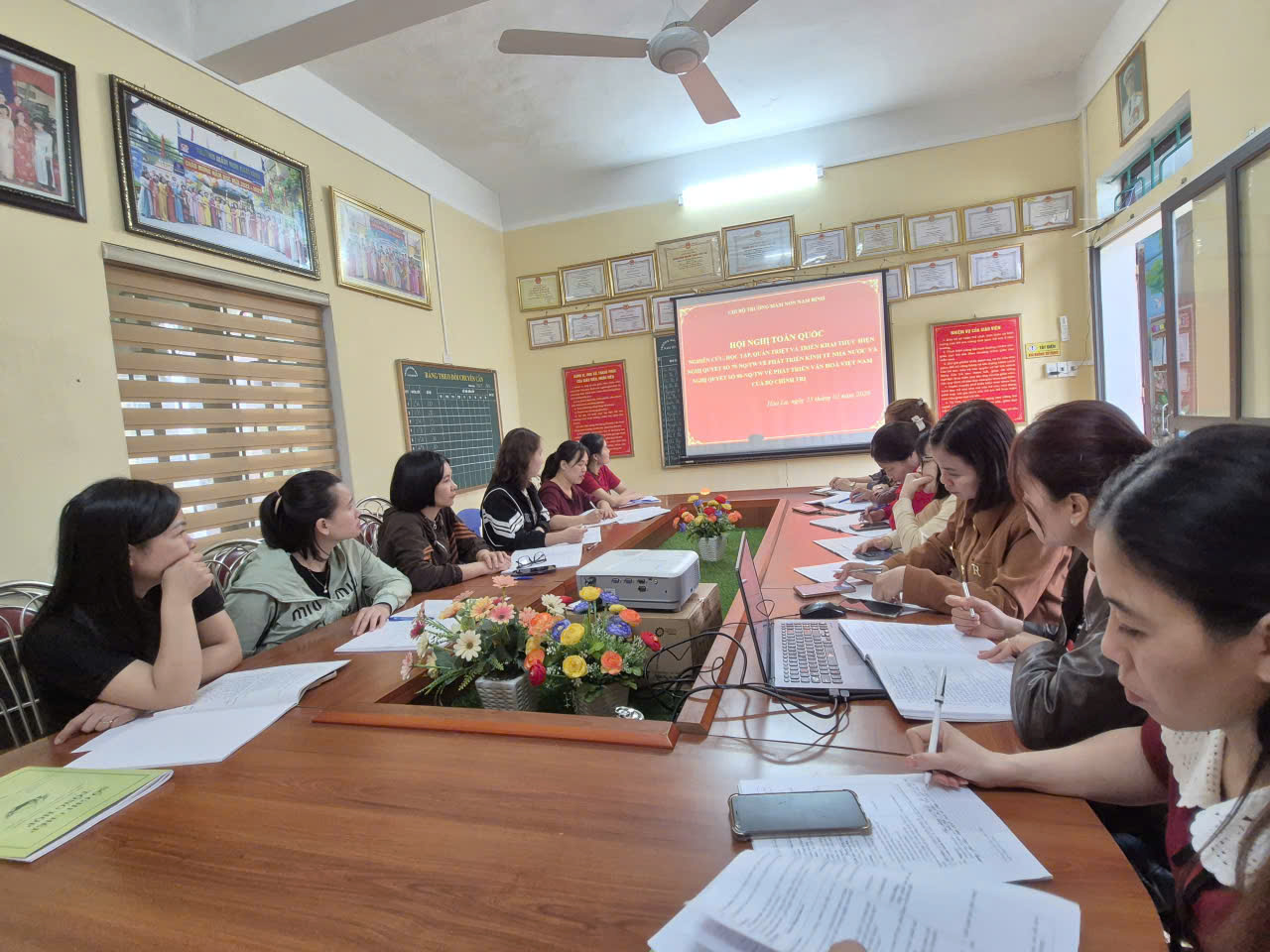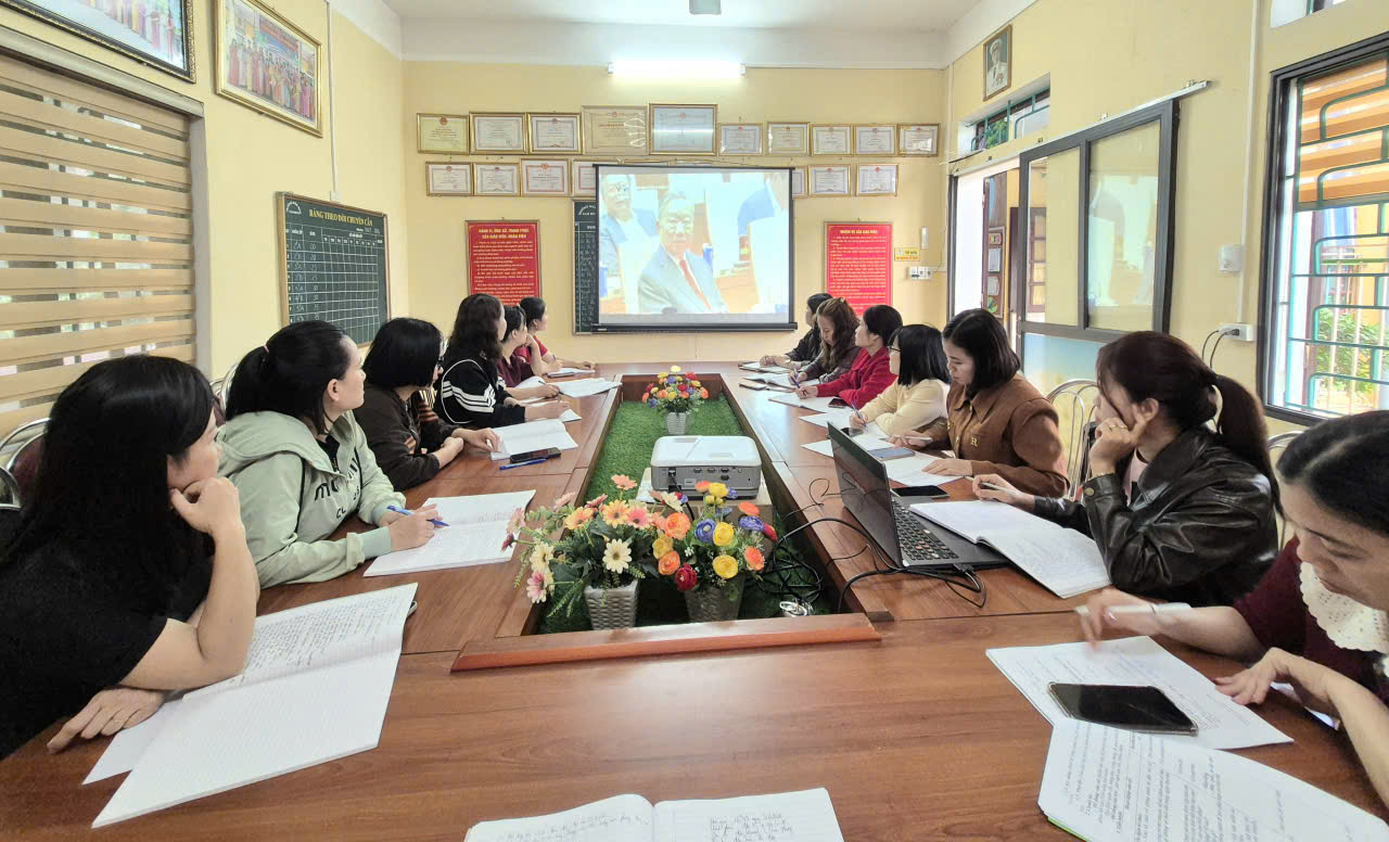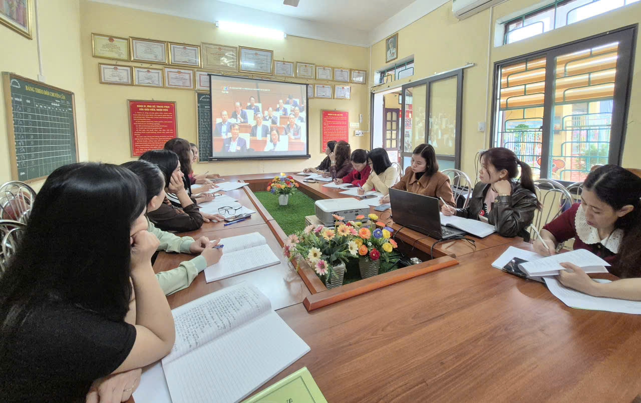 Chi bộ Trường Mầm non Nam Bình tham dự Hội nghị trực tuyến nghiên cứu, học tập, quán triệt, tuyên truyền và triển khai thực hiện Nghị quyết số 79 – NQ/TW, Nghị quyết số 80 – NQ/TW của Bộ Chính trị.